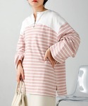 Bab press(Bab)のTシャツ/カットソー「前後2WAYボーダービッグシルエットトップス」を使ったコーディネート