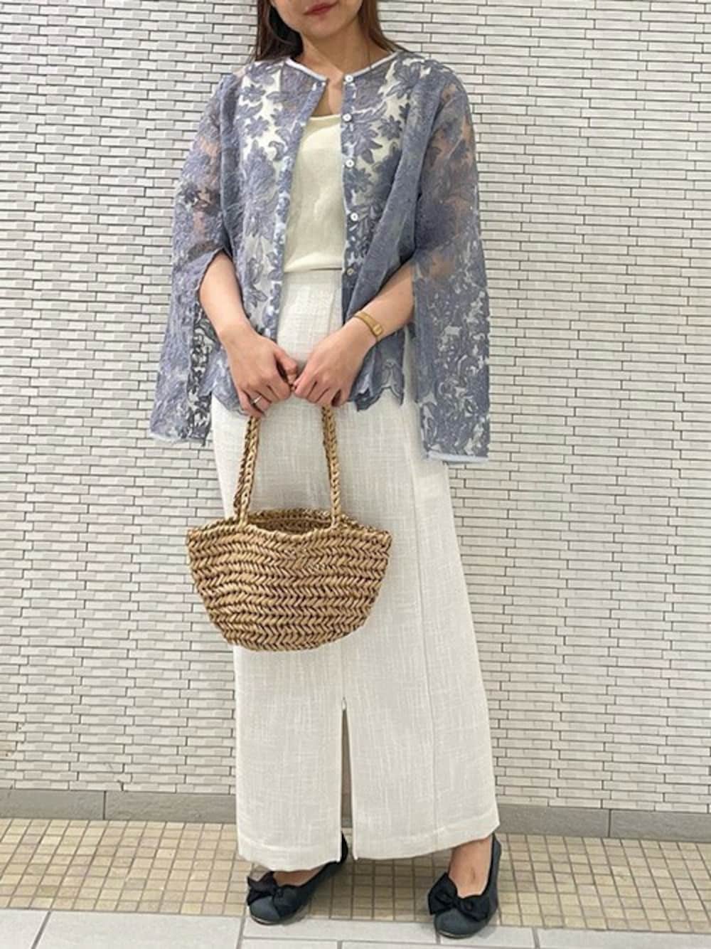 羽織るだけで一気におしゃれ見えするトップスです! 大きな花柄刺繍が女性らしくて目線を独り占めすること間違い無し◎