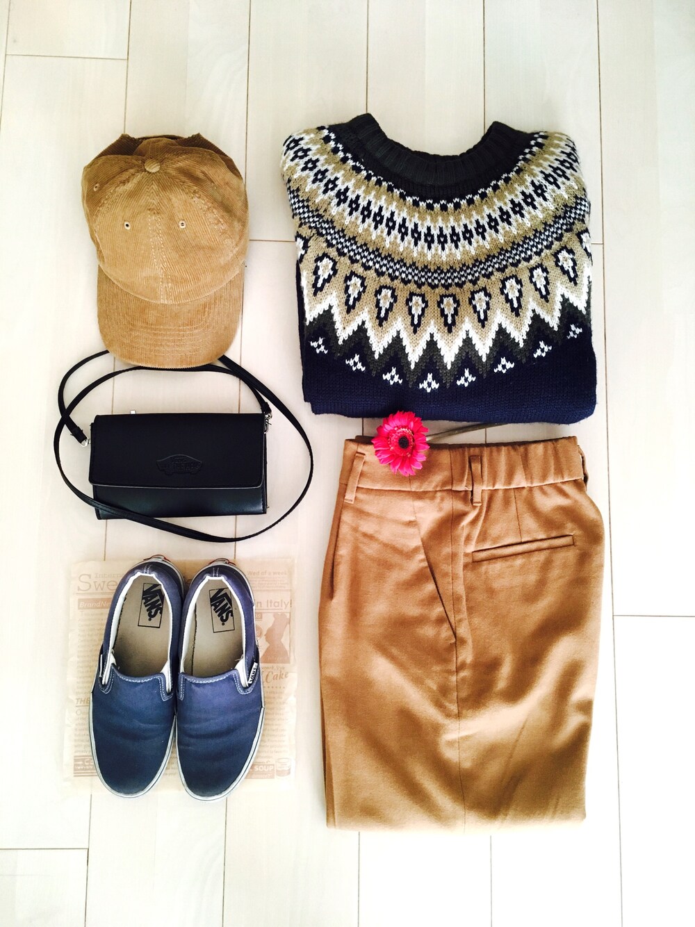 やり方が分かってきたところで、また新しく一からクローゼット入れ替えました( ´∀`)宜しくお願いします☆ 今日は暖かいので、アウターなしで動き回っています。インパクトのあるフェアアイル柄のニットを主役に。