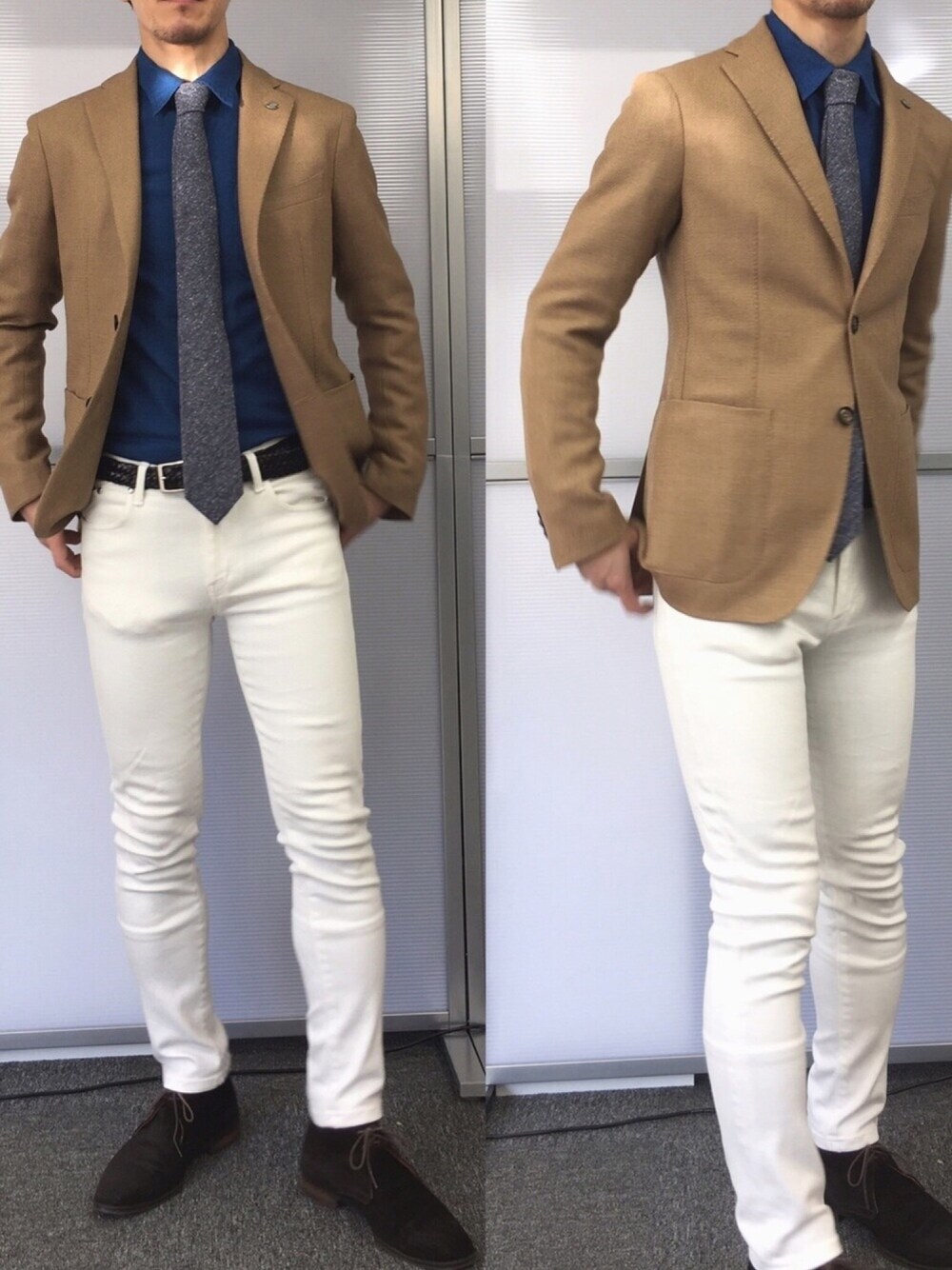 本日も快晴。 夜は絶対に寒くなりますね。 今日は、取引先との新年会のため爽やか系で攻めてみました。 お気に入りのタリアトーレのウールジャケットをベースにジャケットをハッキリさせるための白パンツと濃いめのカジュアルシャツ。 ジャケットと合わせて茶の靴で上下を合わせてバランスよく。 爽やかな冬のイタリア風コーデです。