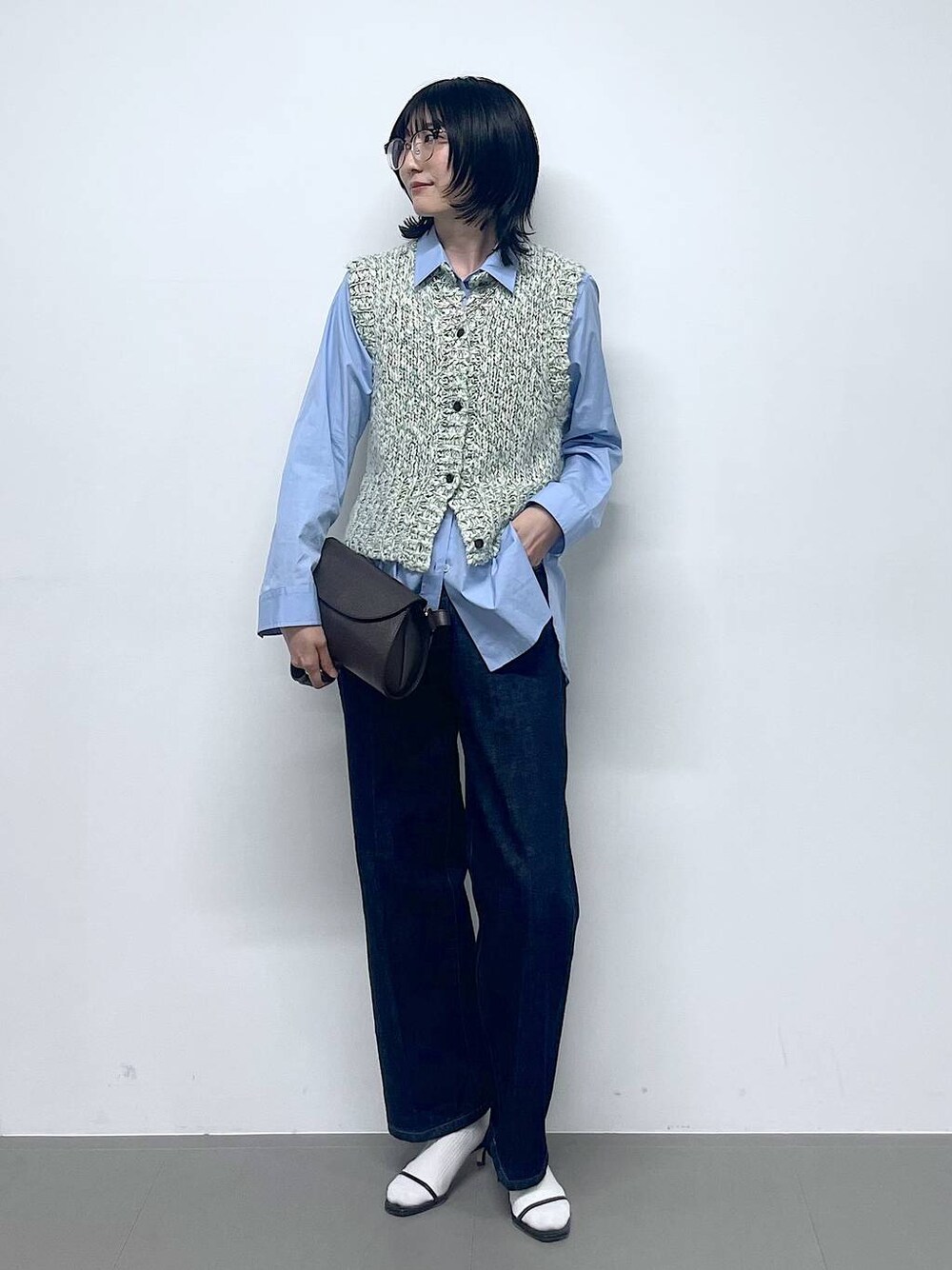 ⭐各アイテムのおすすめポイント  ̄ ̄ ̄ ̄ ̄ ̄ ̄ ̄ ̄ ̄ ̄ ̄ ̄ ̄ ̄ ̄ ̄ 【スラブニットベスト】 グリーンや白の糸が混ざったキャッチーな色のベスト。 レイヤードが楽しめるアイテムです。 コンパクトめなサイズ感なので、 インナーは胴回りがすっきりしたコットンのシャツを合わせてみました☺︎ 上下のボタンを一つずつ外して着ると 上半身が華奢に見えてくれておすすめです! 【ベーシックシャツ】 コンパクトで薄手のシャツなので、レイヤードスタイルやジャケットのインナーにオススメです! 長めの丈感でニットと重ねると程よく裾が見えてくれるのがお気に入りです☺︎ 【センタープレスストレートデニム】 お尻・お腹がスッキリ見えて、さらに脚が長く見える美脚デニムです✨ ハイウエストめなデザインで、お尻が上がってみえるので、今回はトップスをインしてみました! 3サイズ展開で、私は36サイズを着ています。 170cnでくるぶし下くらいの丈感なので、ショートブーツ合わせにぴったりです☺︎