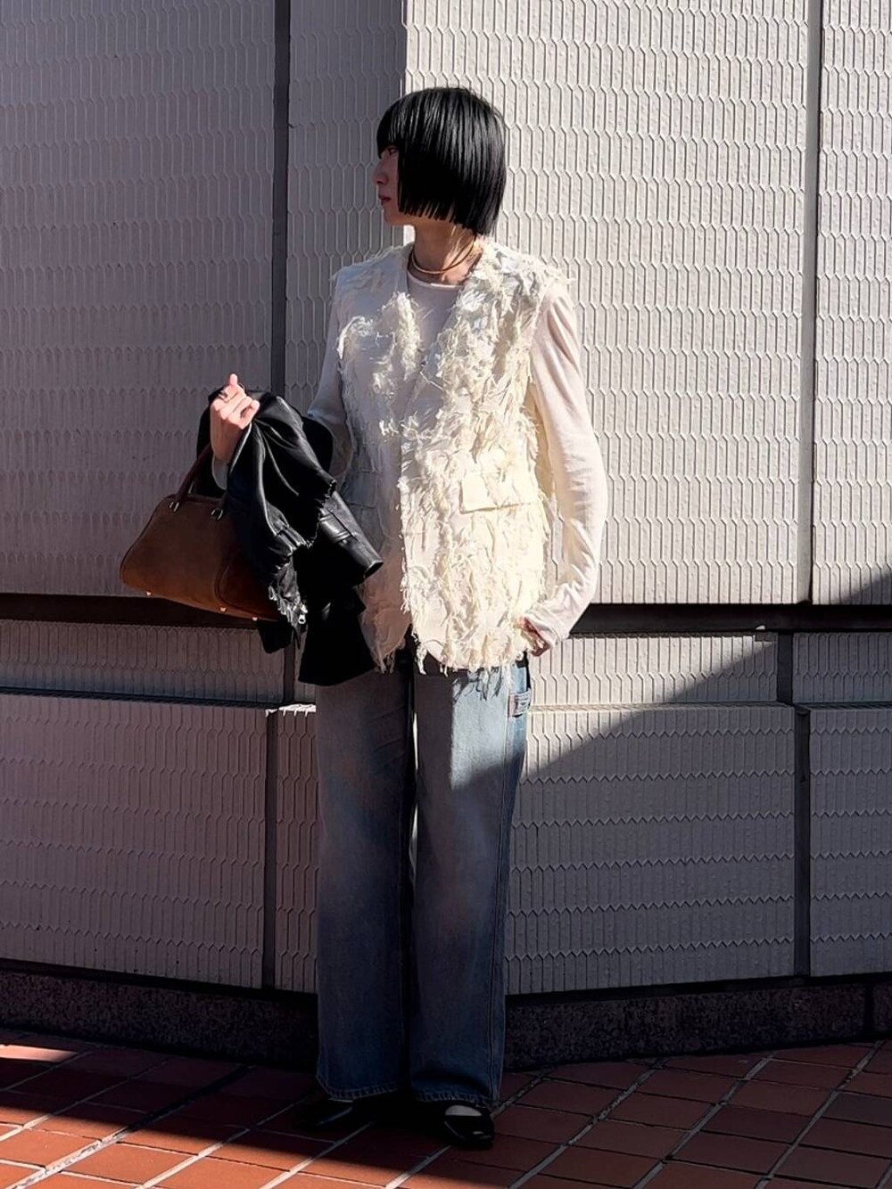 ⭐各アイテムのおすすめポイント  ̄ ̄ ̄ ̄ ̄ ̄ ̄ ̄ ̄ ̄ ̄ ̄ ̄ ̄ ̄ ̄ ̄ 【ジャガードロングジレ】 春夏のトレンドをぎゅっと詰め込んだベスト! しっかりめの素材感でお値段以上に高見えするアイテムです。 肩パッド入りなので、上半身が大きく見えるか心配でしたが、立体感が生まれることで、むしろ華奢見えしました👏🏻 アウターを上から羽織れば今すぐにも着れますし、 初夏はロゴTシャツと合わせてもバッチリだと思います☺︎ 【HAIKURE / WINONAデニム】 ご好評のHAIKUREから新型が登場です☺︎ わたしもヘビロテしているBETHANYは大胆なワイドシルエットが特徴的でしたが、WINONAは気持ちスッキリしたシルエットです。 170cm26incジャストで穿いて床ギリギリの丈感です。