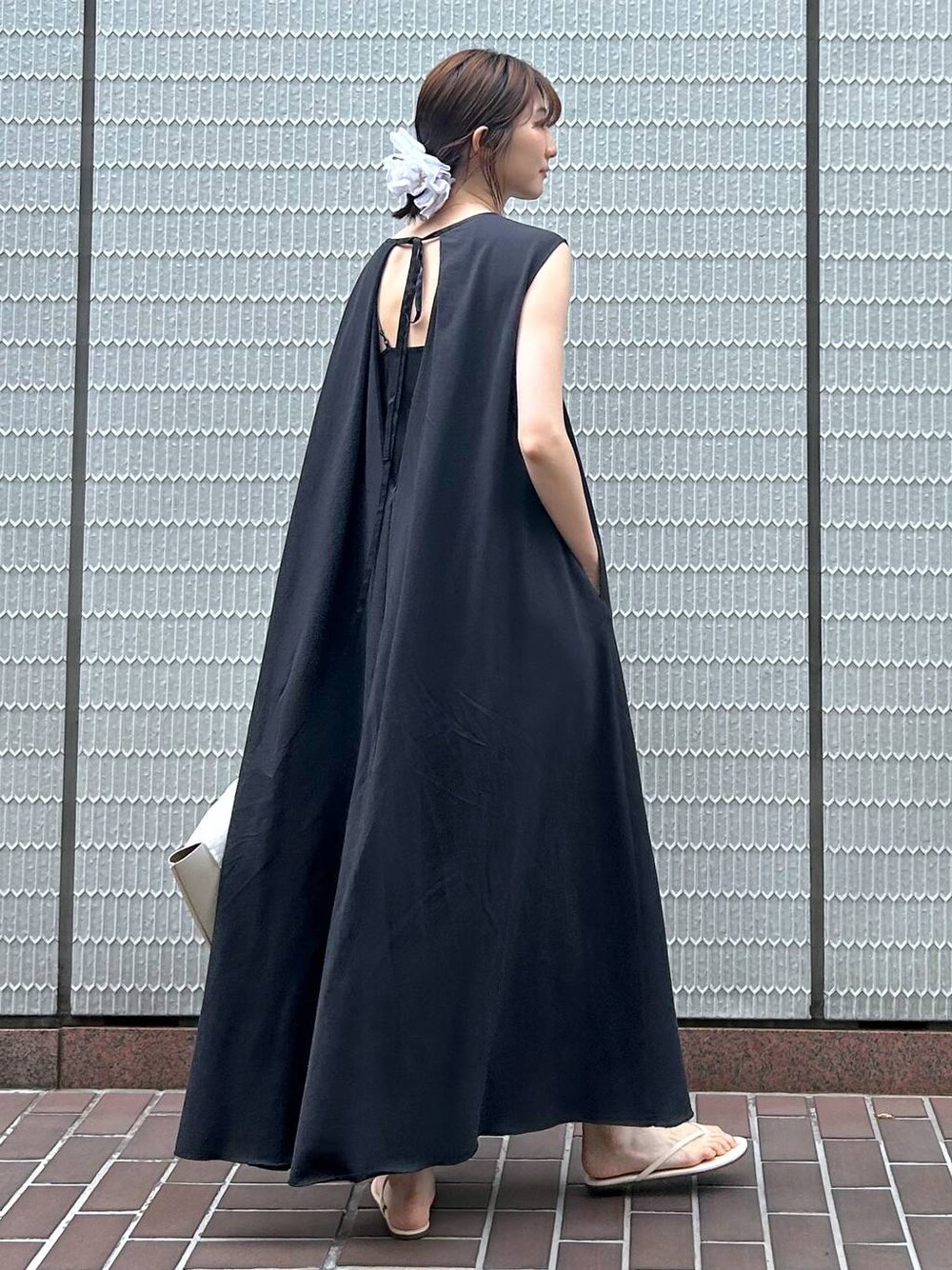 ⭐各アイテムのおすすめポイント  ̄ ̄ ̄ ̄ ̄ ̄ ̄ ̄ ̄ ̄ ̄ ̄ ̄ ̄ ̄ ̄ ̄ リアルバイアイテムです☺︎ 明るめの小物と合わせてキレイめスタイルに。 【バックリボンワンピース】 170cmフリーサイズ着用で、くるぶし少しかかるくらいの着丈です。 丈の長さはもちろん、 ✔︎柔らかくて気取らない楽ちんカットソー素材 ✔︎きちんと感のあるフレアシルエットと背中リボン がお気に入りで購入しました♪ 肩が少し隠れるフレンチスリーブで二の腕をさりげなくカバーしてくれるところもポイントです✨ 肌寒い時はシアーシャツと合わせて着るのがオススメです☺︎