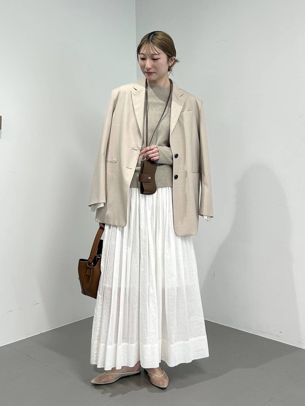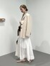 ⭐各アイテムのおすすめポイント  ̄ ̄ ̄ ̄ ̄ ̄ ̄ ̄ ̄ ̄ ̄ ̄ ̄ ̄ ̄ ̄ ̄ 【オーバーシングルジャケット】 ✔︎着心地 オーバーサイズのモードなシルエットが今年らしいジャケット。 シャツ感覚で羽織れる薄手素材。 シワにもなりにくいので、今時期はジャケットの上からアウターを重ねたり、暑くなってきたら冷房避けに持ち歩くものオススメです◎ ✔︎カラー 品よく見える明るいベージュ。 ボタンがアクセントになり間延びしないのが◎ ✔︎デザイン 袖口から出る裁ち切りのレイヤード風デザインがポイント 【COWOオフショルプルオーバー】 ✔︎着心地 綿と毛が混合された素材を使っているので、チクチクせずさらっとした着心地です。 コンパクトなデザインですが、ストレッチが効いていて、程よく肉感があるので体のラインを拾わないのも嬉しいポイント♪ ✔︎カラー 肌馴染みの良いニュアンスベージュ。 ✔︎デザイン 程よくあいた”やりすぎない襟まわり”でオフショル・ワンショル・ボートネックとお好きな着方で楽しんで頂けます! 【シアーオーガンスカート】 ✔︎着心地 ウエスト総ゴムで脱ぎ着が楽ちんです! かさっとしたハリのある綿素材で、これから夏・初秋にかけてロングシーズン着て頂けます◎ ✔︎デザイン 膝くらいまで裏地が付いているので、肌馴染みの良いカラーのインナーでしたら目立たずに着て頂けます◎ 計算されたギャザーの入り方で腰回りが膨らまずウエストまわり気にせず着れました☺︎
