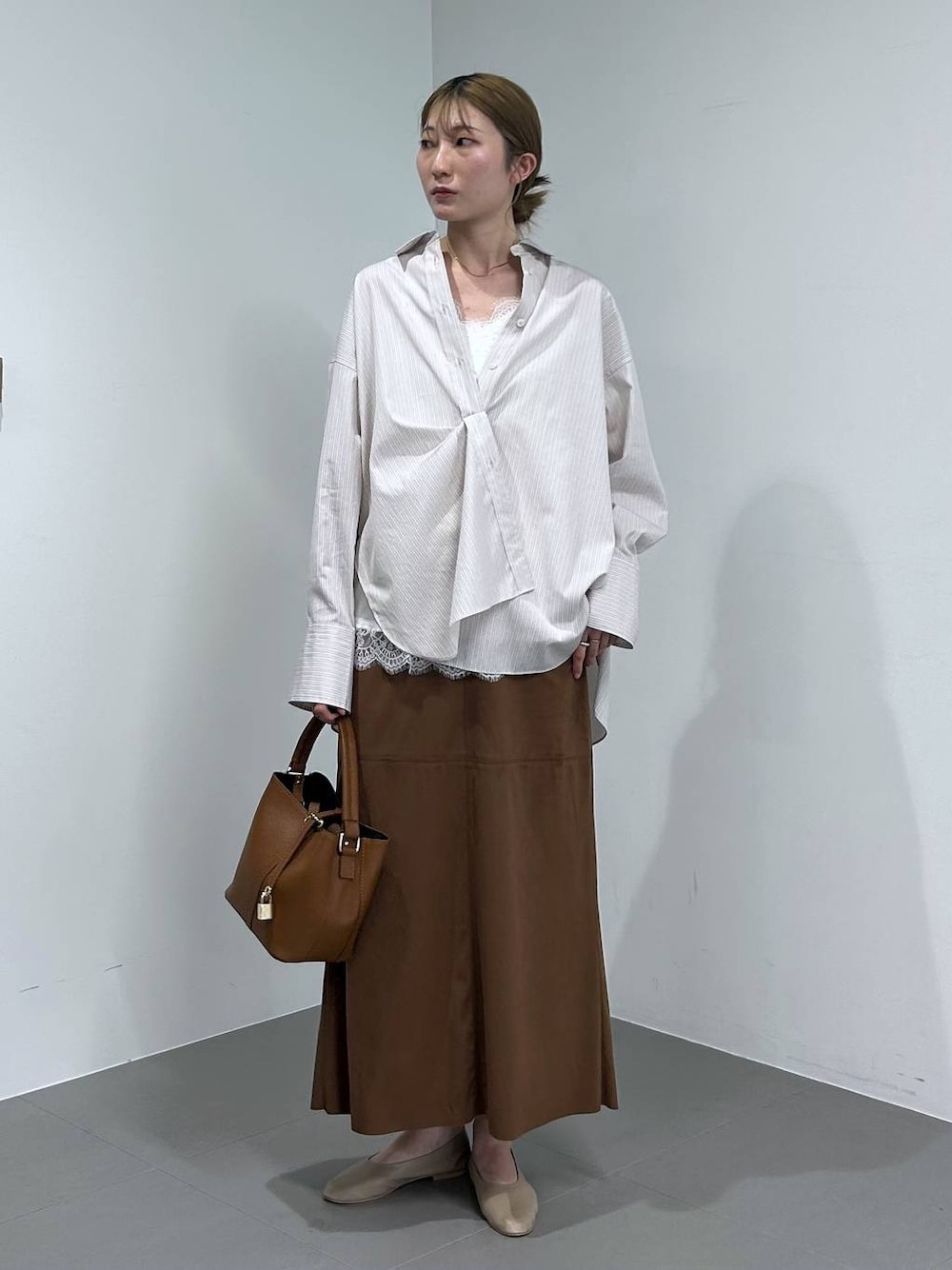 ⭐各アイテムのおすすめポイント  ̄ ̄ ̄ ̄ ̄ ̄ ̄ ̄ ̄ ̄ ̄ ̄ ̄ ̄ ̄ ̄ ̄ 【コットンオーバーシャツ】 ✔︎着心地 ハリと光沢感、上品さを兼ね備えながら、綿素材でさらっとした心地よい肌触りのシャツです! ✔︎カラー ニュアンスカラーのストライプ ✔︎デザイン カフスの金ボタンがアクセントになり、華やかな雰囲気に♡ 【フェイクスエードスカート】 ✔︎着心地 柔らかいフェイクスエード素材、裏地も付いているのでタイツやロングブーツと合わせても張り付きにくいです◎ ✔︎カラー 継続してトレンドのスエード素材 こっくりブラウンが今年っぽさを底上げします! ✔︎デザイン 膝下から少しフレアに広がるシルエットで 腰回りはスッキリです! 後ろスリットで足捌きも抜群◎