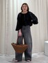 オールブラックコーデは重たくならなように 素材感や色味のグラデーションをつけたい派です♡ カジュアル派なわたしでもブラックなら甘めブラウスにも挑戦ができそう! 程よい透け感がありますが着てみると全然透けないです。 シルク混素材なので柔らかくて肌触りもよいです✨ デニムは155cmで36サイズを履いてみました。 ヒール履くとぴったり、ぺたんこだと少し引きずるのでベルト必須です!