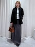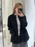着用コーデ:4件柳橋唯さんコラボアイテム着てみました🪐 しっかりしているのにすごく軽くて着やすいツイードジャケット 私が着用したブラックは少しラメ感があります🧵 ツイードですが単色なので、柄っぽさは強くないです! ボタンではなくホックで止めるデザインなので、スッキリした印象に✨ 落ち感があるので小柄な方でも着られてる感が出にくいのに、しっかり中に着込めるサイズ感はこれからの季節に使いやすいです! 155cmの私でお尻が隠れる丈なので ジャケットはサイズ感が難しい、、という小柄さんにめちゃくちゃオススメです!!