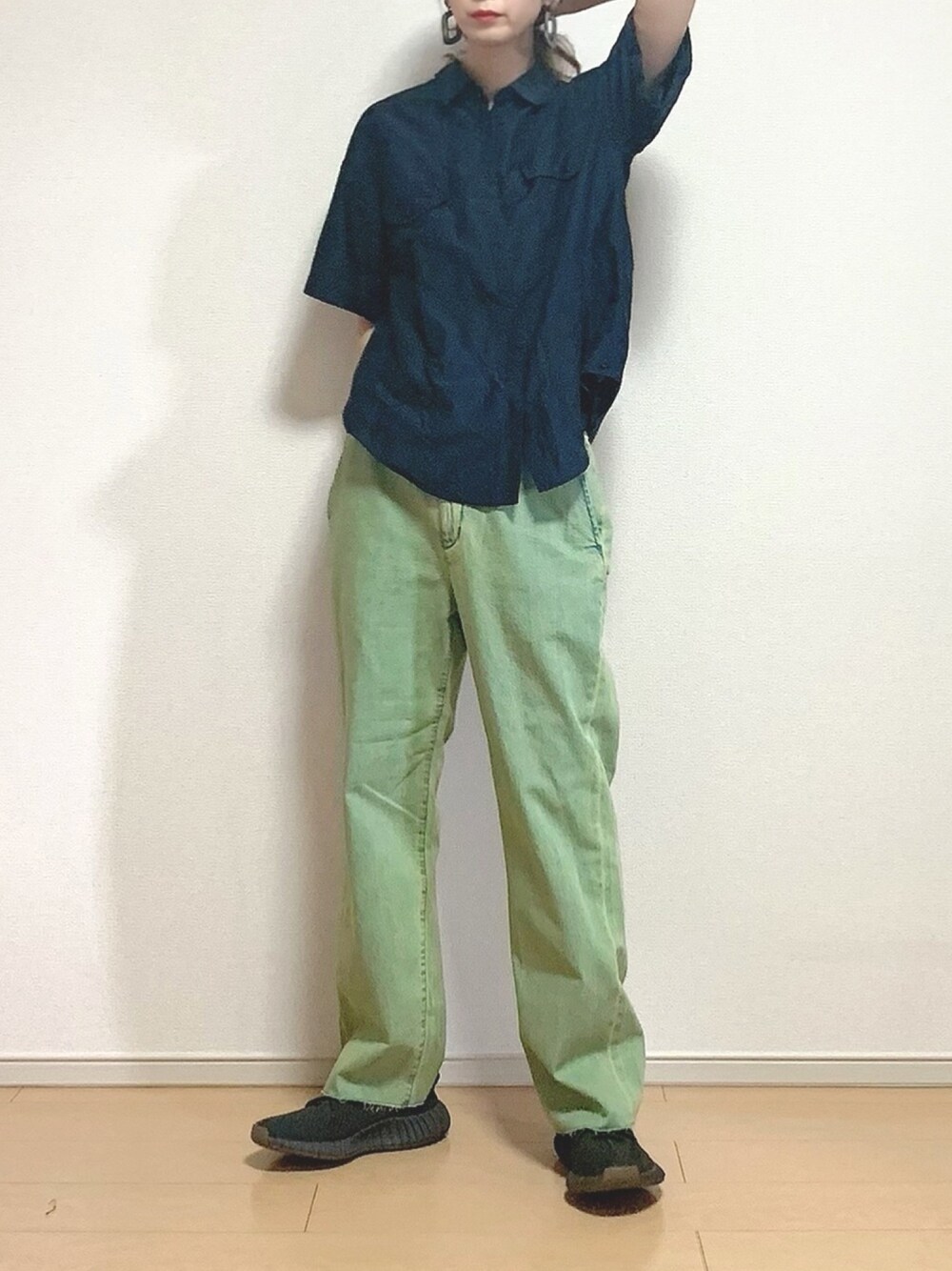 シャツ着回し! リアルスタイル!! ストリートカジュアルでも使える上品シャツ! ガッツリスニーカー合わせでメンズライクにしました!✌🏻 Instagram ☞ @ering_91