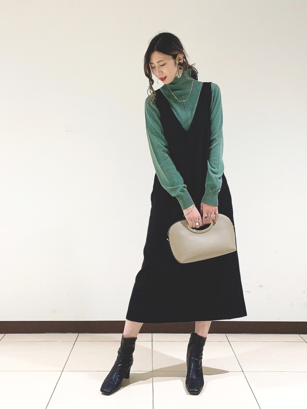ERIKA (BABYLONE)(BABYLONE ルミネ立川)のワンピース「ジャンスカニットセットアップ」を使ったコーディネート