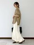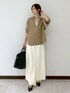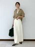 大人オシャレ見え! 抜け感コーデ! ブラウスは、襟付きの細長くシャープな印象がある深Vネックで抜け感◎ 袖と後ろ身頃に立体的なフォルムが出る、こだわりのパターンも女性らしく着れる嬉しいポイント! ナチュラル見えになるよう、バイオウォッシュ+柔軟の製品洗い加工を施した表情のある素材です! ボトムスはアセテート素材の落ち感が楽しめるIラインスカートと細身フレアパンツをレイヤード! すかーもパンツもウエスト全ゴムで楽ちんに履けちゃいます♪ スカートは前後両方スリットが入っていて足捌き◎ パンツは履くだけで脚長効果抜群です!! 全部お家で洗えるのが嬉しい〜!! 大きめレザーバッグとヒールでキチンと感を演出しました! 是非みなさんもお試しください♪ 来店予約サービス☞ で予約! 着回し伝授します☻♡ Instagram ☞