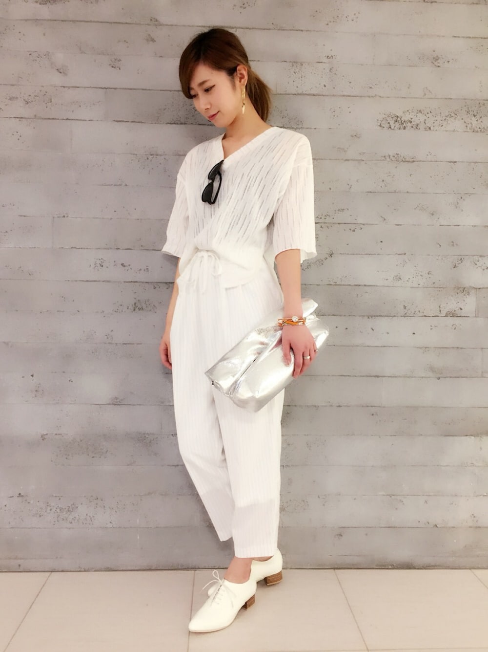 大人リラックス👗💓 スラックスと足元できちんと感を残して、緩めのトップス合わせてリラックススタイルに✨ 今回はオールホワイトに挑戦です🙋🏻 トップスは透け感があってこれから大活躍間違いなし◎ スラックスはストライプ柄なので、オールホワイトでもダラッとし過ぎずオススメです🙆🏻 ウエストもゴムで紐でも調節できるので、程よい緩さがでます💓 そろそろアクセも揃えたくなりますよね🙌🏻 今回はオレンジ系のブレスレットをチョイス✨ アクセも豊富に揃えています!! 是非お店に見にいらして下さい❤️