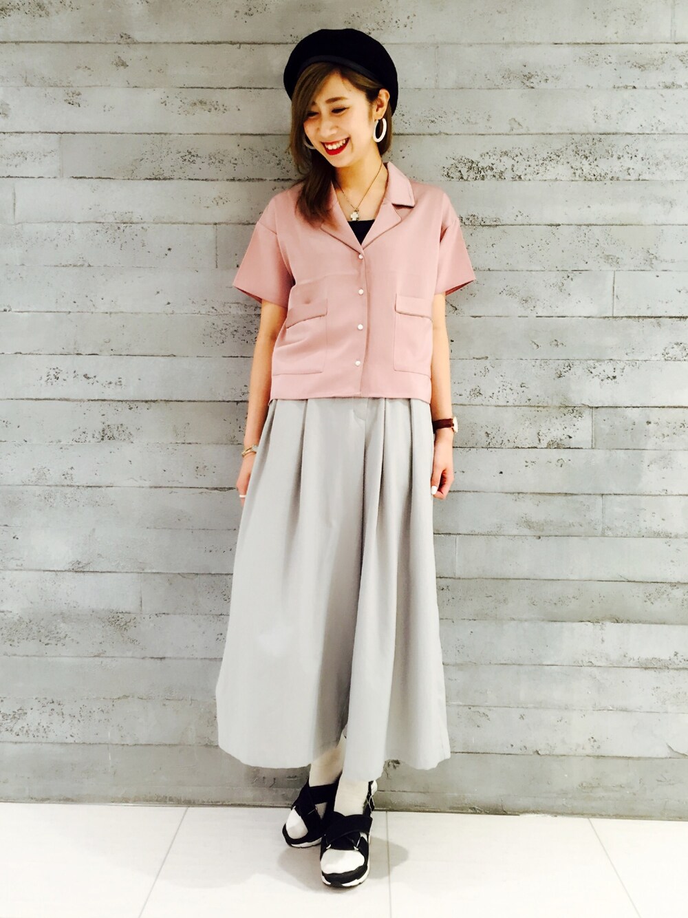 大人気✨のパジャマシャツ、パジャマパンツ共に再入荷致しました!!😍💕 今回はピンクで攻めてみました!✨ ライトグレーのガウチョと合わせてクリーンな印象に!! 小物でブラックを使い色使いにも気を付けました!🙌🏻 是非みなさん店頭でチェックして下さい!💖