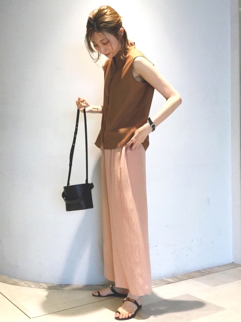 ブラウス×イージーパンツ きちんと感のあるカジュアルコーデ♪ ブラウスはハリがある上品な素材なのできれいめな印象で着て頂けます。 首元のフリルも大人かわいい印象で、フェミニンスタイルにぴったりです。 ワイドパンツは総ゴムで履き心地が良く、リボンで調節できるのでしめつけも無く、汗をかきやすいこの時期にぴったりです。 しなやかな生地で体のラインを拾わないので、スッキリ着て頂けます♪