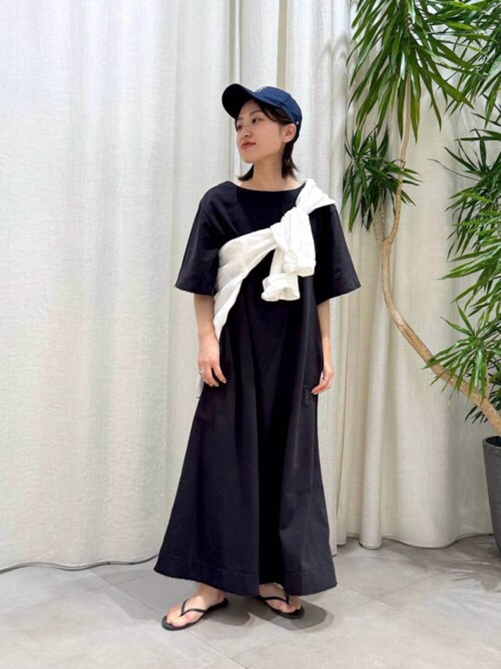 156cm / 骨格ストレート ⭐各アイテムのおすすめポイント  ̄ ̄ ̄ ̄ ̄ ̄ ̄ ̄ ̄ ̄ ̄ ̄ ̄ ̄ ̄ ̄ ̄ 【ワンピース】 薄手のスウェット生地でさらっとしていて、 夏にリラックスしながら着ていただきやすいです◎ 156cmでもくるぶし隠れるくらいの着丈なので、 小柄さんでも着られるワンピースです✨ 裾に向かってAラインになってるので、 カジュアルすぎずどこか女性らしい印象なのも 嬉しいポイントです♡ 肘まで隠れる袖ありワンピース、重宝しそうです!!