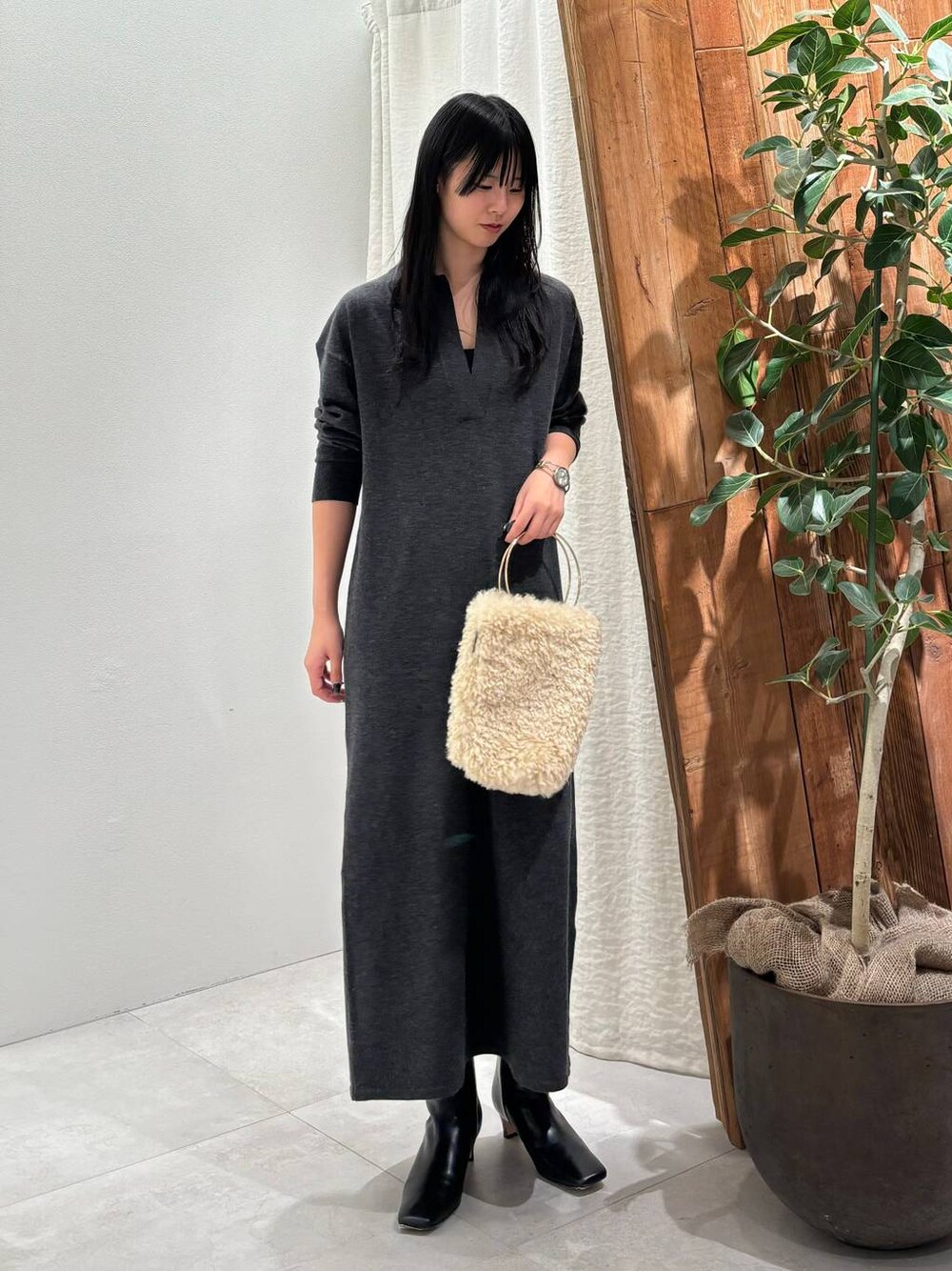 おのの(BABYLONE アトレ恵比寿)のハンドバッグ「ファーバッグ」を使ったコーディネート