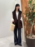 アウターは軽くてサラッと羽織りやすく、 気軽に着やすいです!! 丈も長めなので腰周りが隠れてくれるのがポイントです 袖ぐりが広めなので分厚めトップスから薄めトップスまで 色んなトップスを合わせられるのが、気温感が 難しい今の時期にピッタリです パンツのフレアシルエットの1番細く見える膝あたり がアウターの裾から出てくれるので 足が細く見えるのがいちおしです!