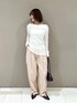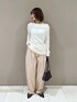 🌟各アイテムのおすすめポイント  ̄ ̄ ̄ ̄ ̄ ̄ ̄ ̄ ̄ ̄ ̄ ̄ ̄ ̄ ̄ ̄ ̄ 【トップス】 クシュっと感が可愛く、程よくこなれた印象のトップス🤍 落ち感のある素材で身体のラインを拾いにくく、自然と華奢見えしてくれます☺️ ジャケットのインナーやレイヤードスタイルにも使いやすく、着回し力も抜群です✨ アウトでもインでもバランス良く着られますが、薄手なのでインスタイルだとよりすっきりした印象に◎ 【パンツ】 ハリ感が綺麗で、カジュアルになりすぎないパンツ🫶 深めのタックが入っているので腰周りを拾いにくく、脚のシルエットも出にくいです◎ ウエストは総ゴム仕様なので、履きやすさも抜群☺️ きれいめに履きたい方は36サイズ、 少しラフに楽しみたい方にはゆとりのある38サイズがおすすめです✨ 丈は折り返して調節できるので、シルエットの好みでサイズを選ぶのも🙆🏻♀️ ⬇️ご購入はページ下の使用アイテムから⬇️