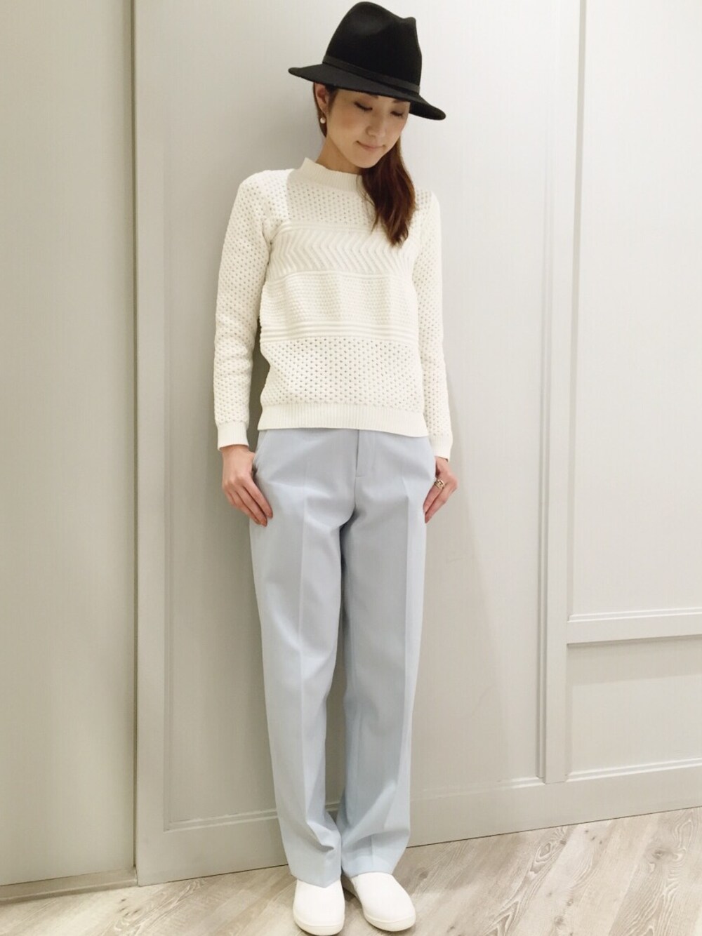 編みが柄になっているニット♪ ホワイトコーデにおすすめです☆ メンズライクなパンツと合わせて