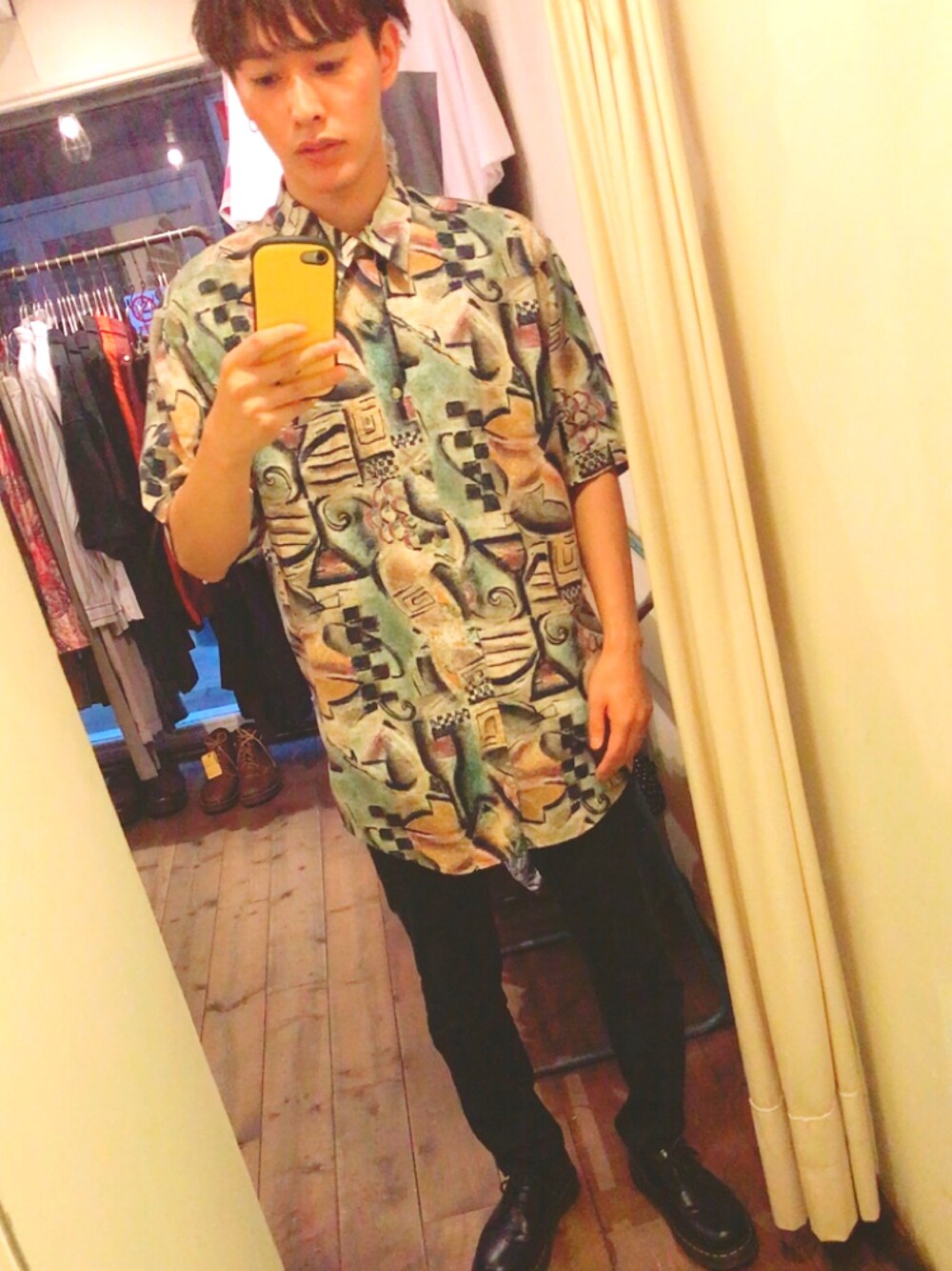 こんばんは🌆 いつもいいね、saveしてくださりありがとうございますm(_ _)m 最近はまってる柄シャツ。 今回はシャツ出しー!