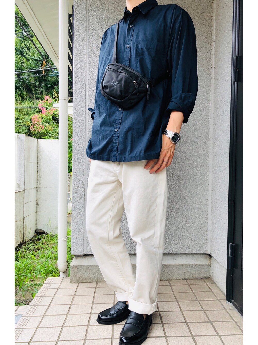 30度でも涼しく感じて(?)長袖シャツ 下はユニクロのレギュラーフィットジーンズを通常サイズよりも大きめで履いてます 早く秋にならないかな〜
