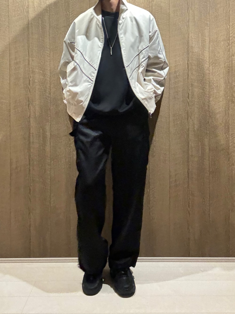 サッカーのカーゴパンツ「サテンカーゴパンツ」を使ったコーディネート