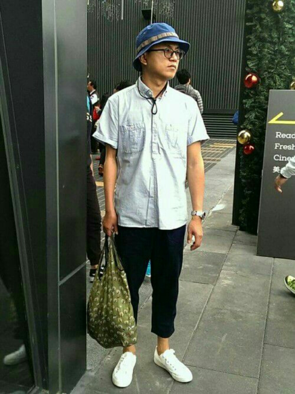 帽子:DEMARCOLAB 衣服:Esprit 褲子:Giordano 鞋子:MUJI 藍色系的漸層搭配加上寬鬆的風格是夏天的好朋友。
