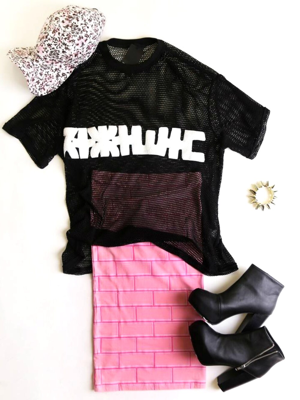 1)帽子 ブランド:KTZ CROOKED CAP - Pink Flower https://www.bkrm.com/en/shop/ladies/urban/accessories/ktz/crooked-cap-pink-flower 2)Tシャツ ブランド:KTZ BERBERE OVERSIZED NET T-SHIRT - BLACK https://www.bkrm.com/en/shop/ladies/urban/tops/ktz/berbere-oversized-net-t-shirt-black 3)スカート ブランド:Lazy Oaf HIT THE WALL MIDI SKIRT - PINK https://www.bkrm.com/en/shop/ladies/urban/bottoms/lazy-oaf/hit-the-wall-midi-skirt-pink www.bkrm.com