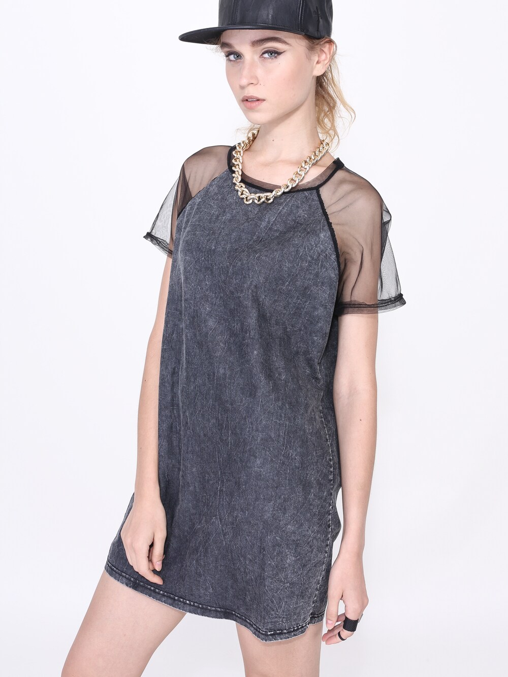 Dress: BKRM White Label CONTRAST SHEER MESH YOKE DENIM DRESS - BLACK https://www.bkrm.com/en/shop/ladies/urban/dresses/bkrm-white-label/contrast-sheer-mesh-yoke-denim-dress-black Cap: Human Potential FAUX LEATHER HAT BLACK https://www.bkrm.com/en/shop/ladies/urban/accessories/human-potential/faux-leather-hat-black