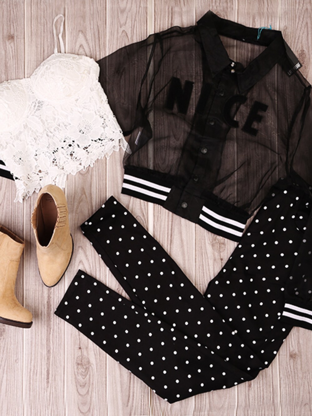 1. LAZY OAF - NICE JACKET - BLACK https://www.bkrm.com/en/shop/ladies/urban/jackets-and-coats/lazy-oaf/nice-jacket-black 2. LAZY OAF - DOT DOT PANTS - BLACK https://www.bkrm.com/en/shop/ladies/urban/bottoms/lazy-oaf/dot-dot-pants-black www.bkrm.com