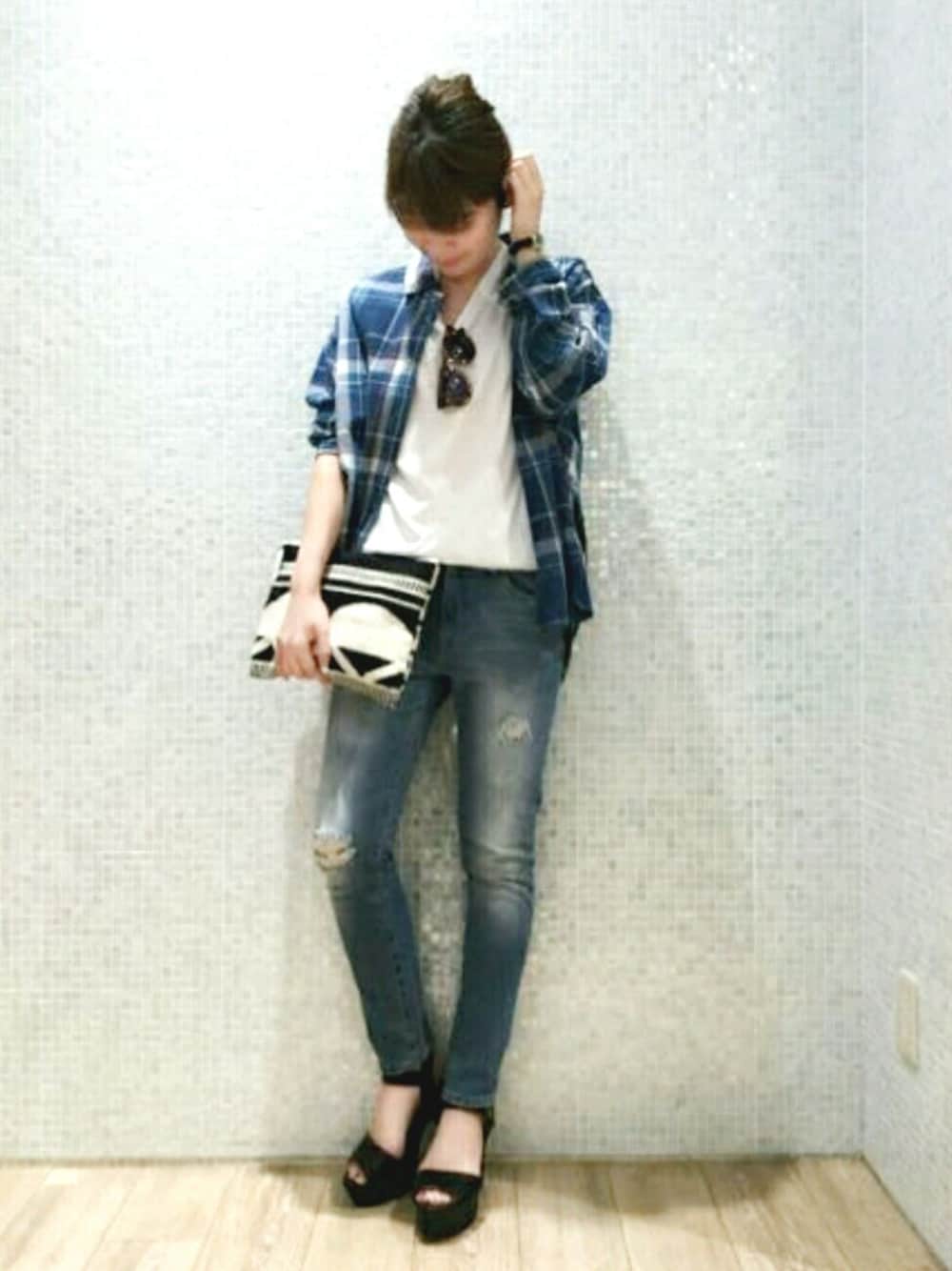 オーバーシャツは一枚で着ても下半身をカバーできるのと、腰巻きとしてもゆるっと使えて着回しに向いてます💡