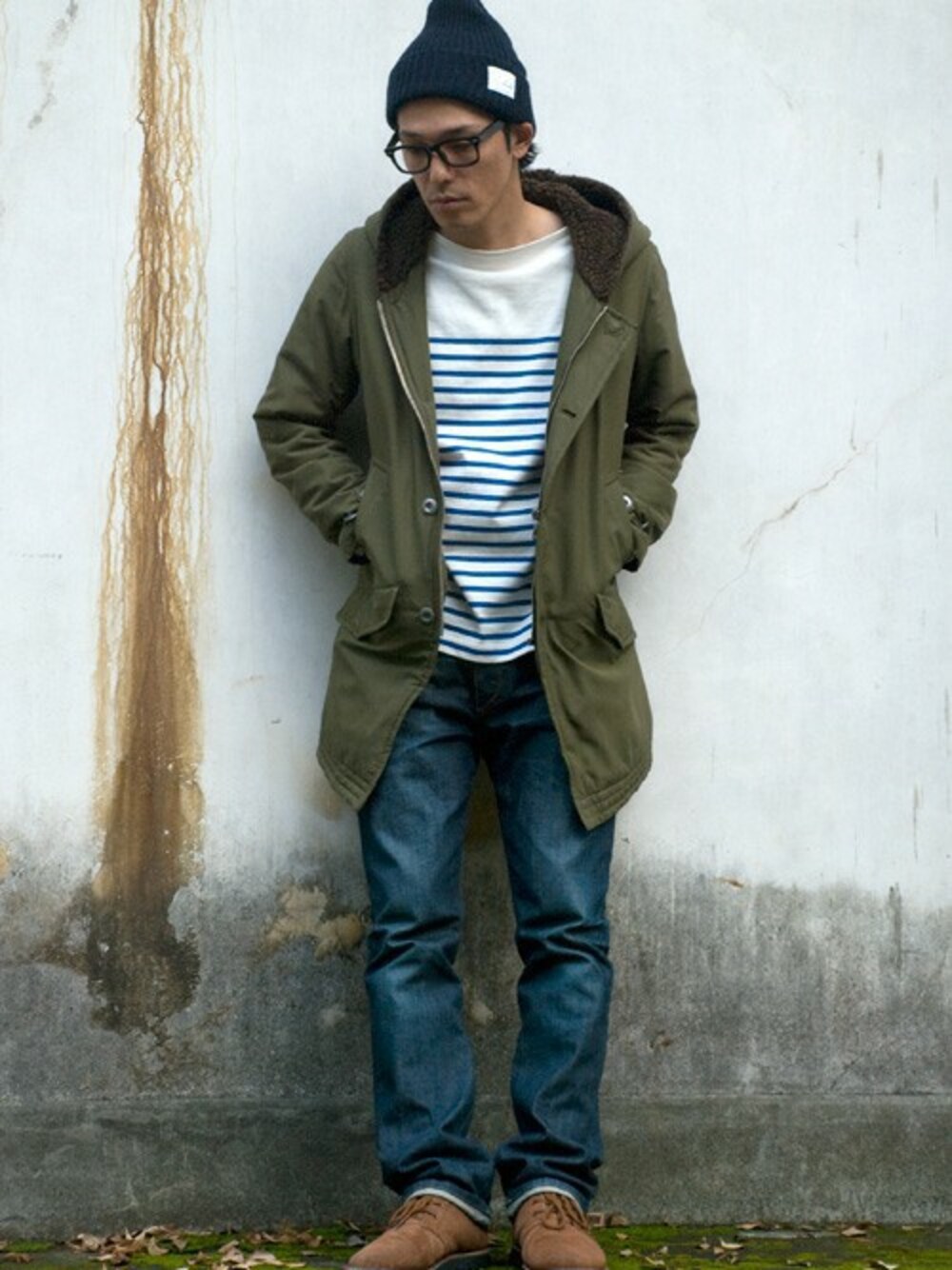 BACKWARDのニットキャップ/ビーニー「ミドルゲージ ラベルニット キャップ メンズ&レディース」を使ったコーディネート