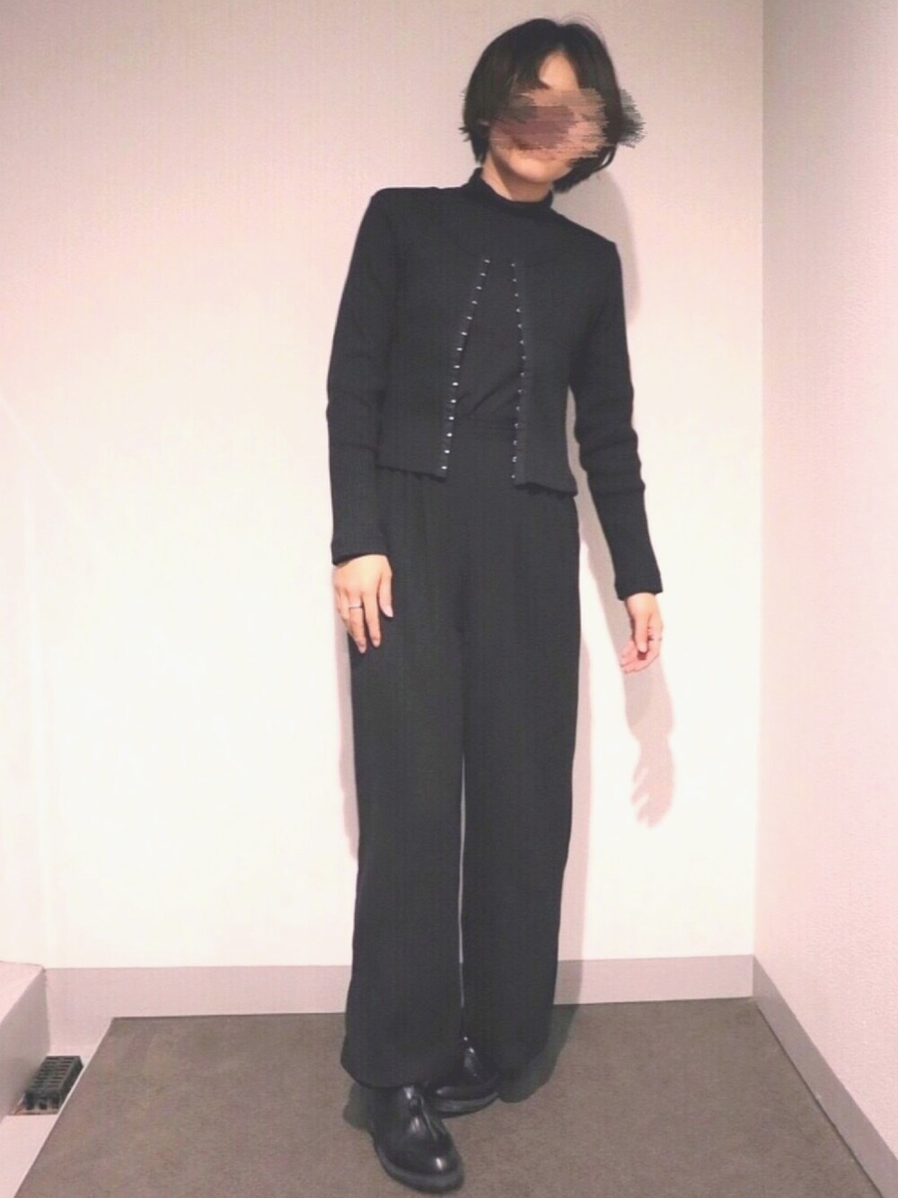 ALL BLACKな日でした。 【BEMSカーディガン】 ボタンとかジップじゃなくてホックになっててとっても可愛いし着痩せするし最高な1枚💫
