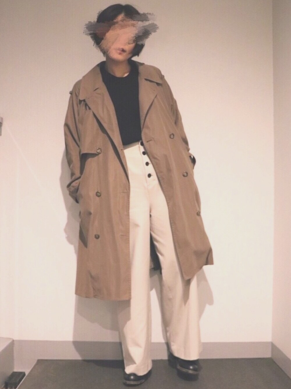 ちょくちょく登場してるビンテージのトレンチコートは3年前?くらいに買ったもの。 形と素材感がとってもいい感じでずっと愛用〜 今回は少しキレイめなモノトーンコーデにプラスしてみた👯‍♂️