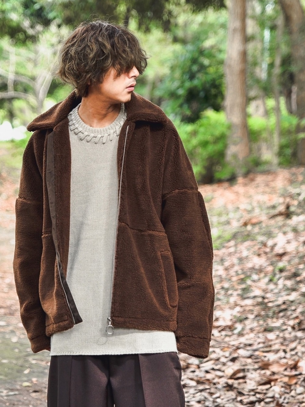 インスタ📲 @ryo__nunouch__719 ボアブルゾン × ニット ダークブラウン × ベージュ 格好良さ × 可愛さ