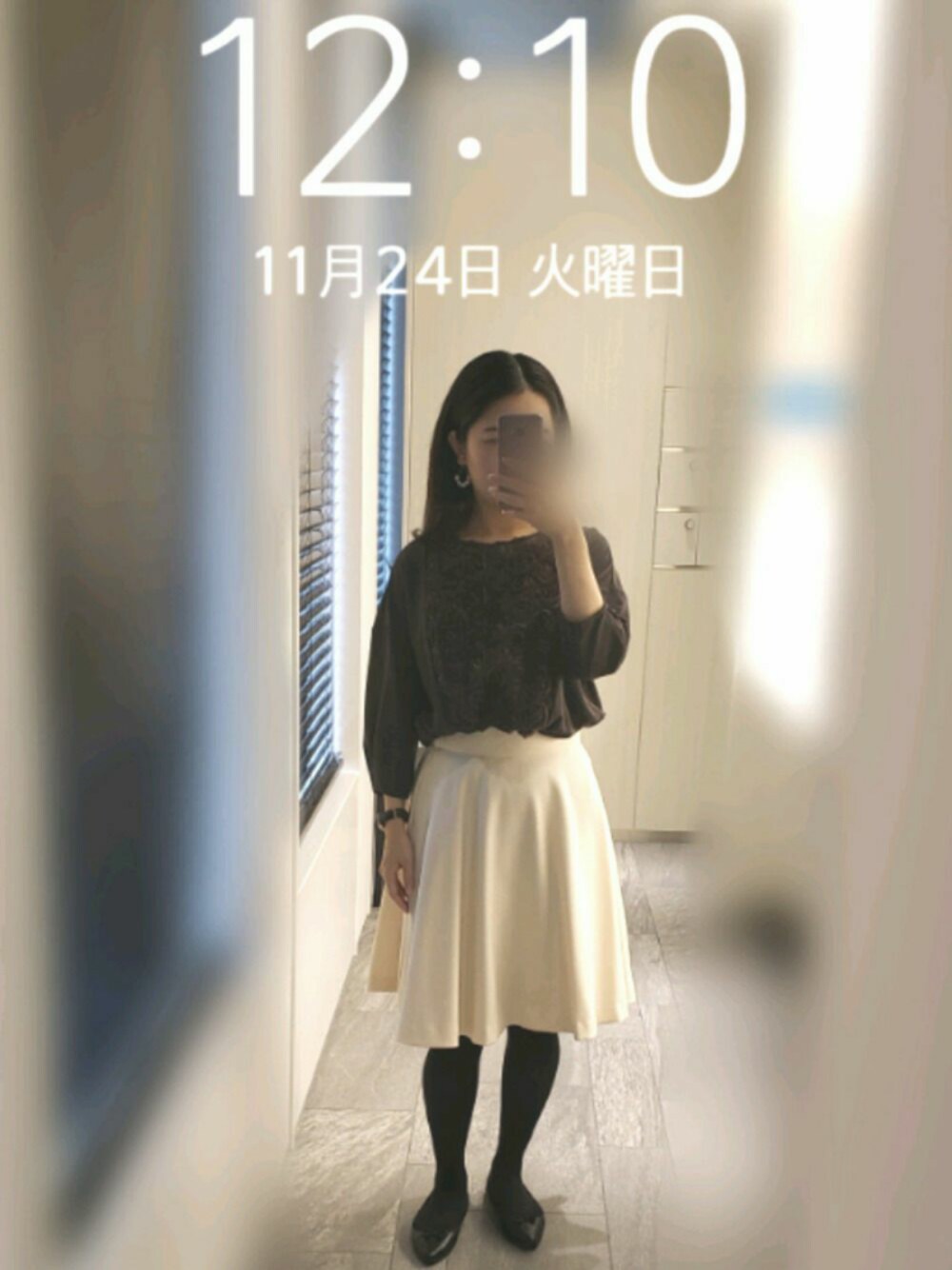 ブラウン×ホワイト⛄ ちょっとガーリー😊💕 トップスは薔薇っぽいレースで可愛い🌹