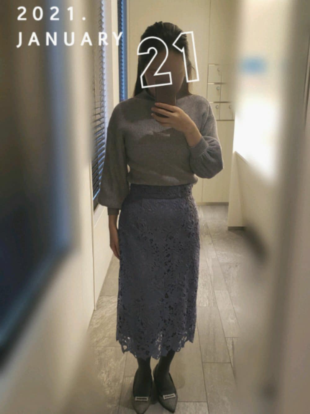 1/21(木)⭐ グレーで統一🎵 レースのスカートは柄が大きくて👍🥰 エメルの今期は丈がちと長いので見送ります💦