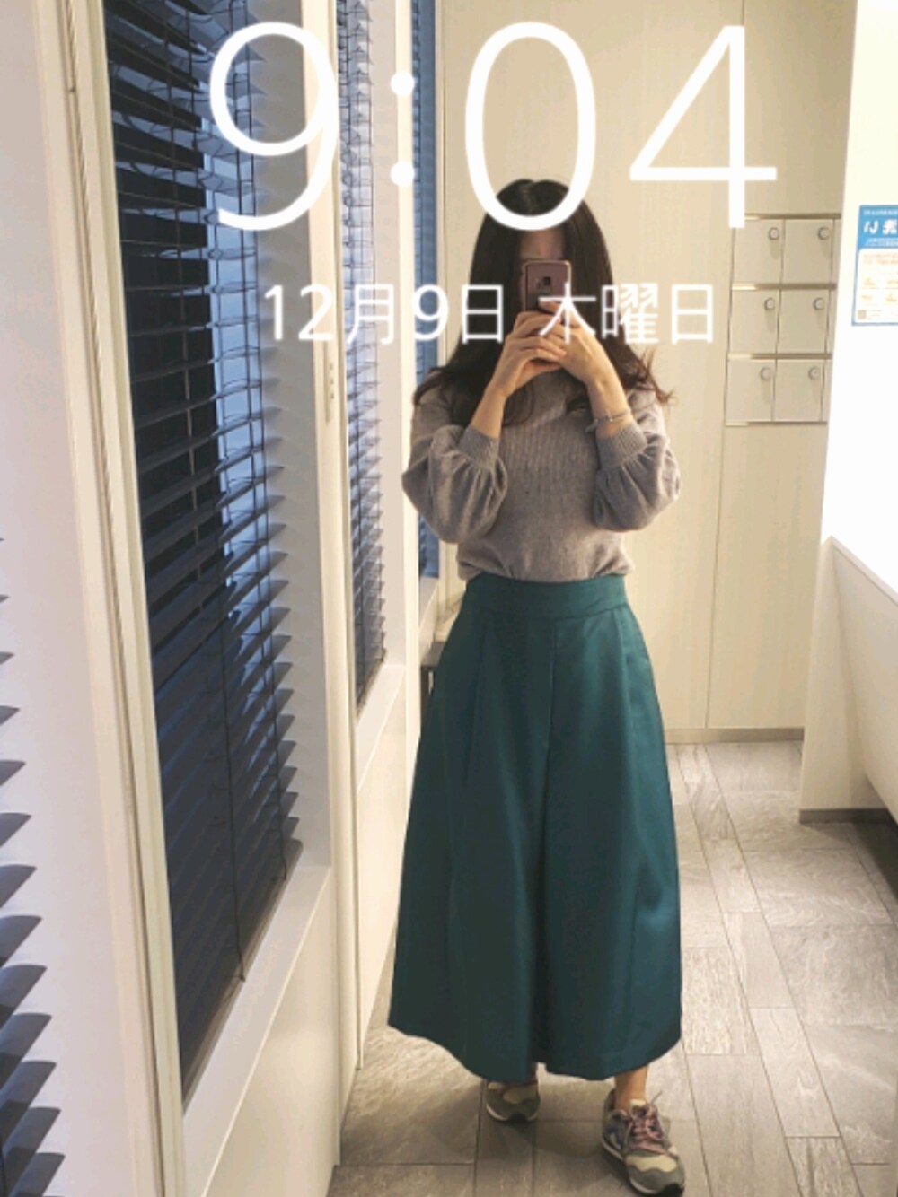 グレーのスニーカーとトップスをリンク⭐ アウターはバブアーだった🐶