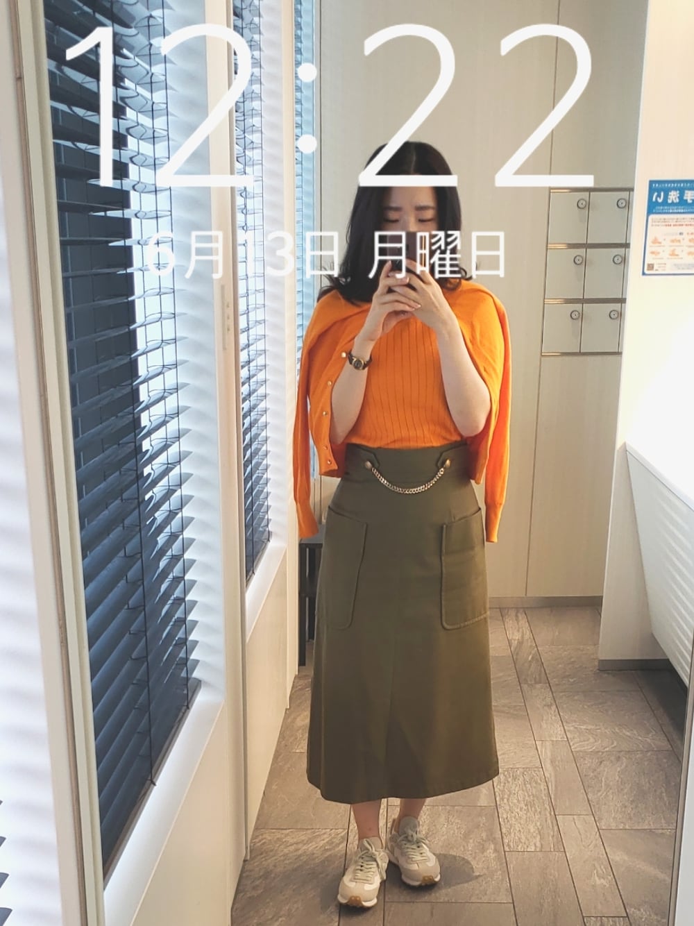 オレンジ×カーキ 柿みたい言われた🤣確かに~🍊