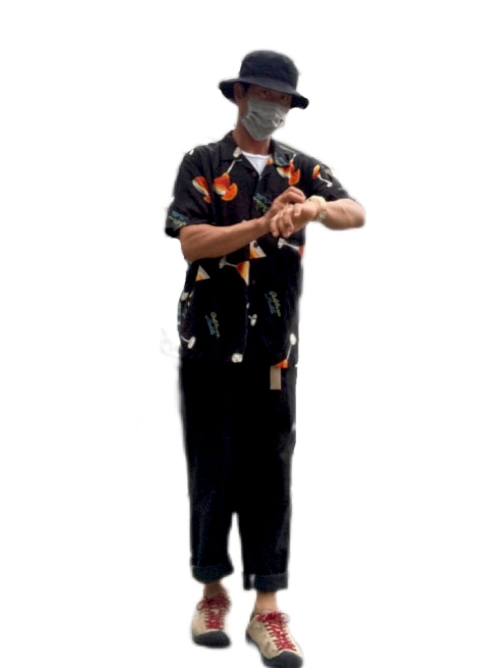 10FEETのタクマさんがライブで黒アロハ着てたので採用してみました。