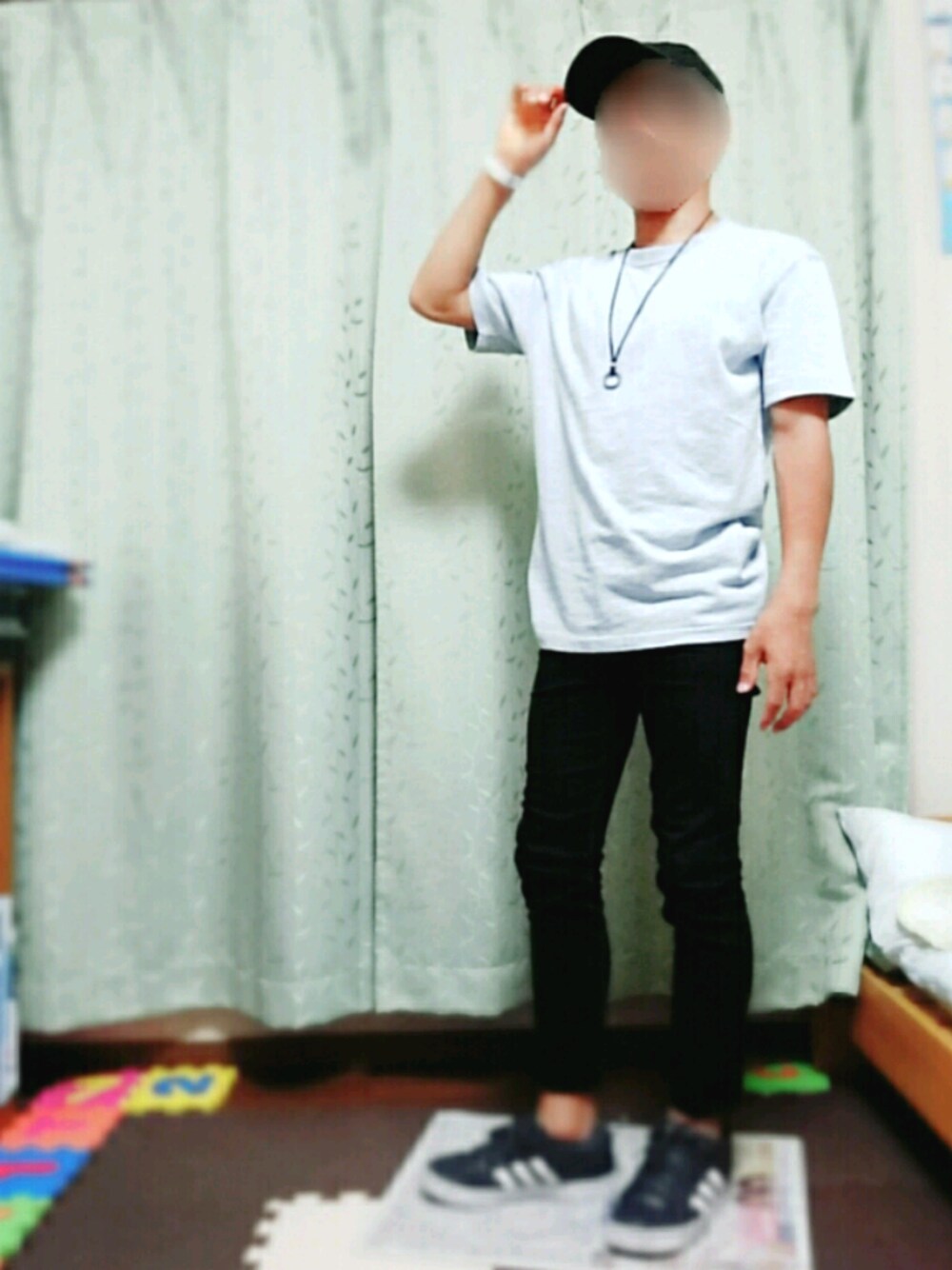 初投稿です❗ あまり着ない色のTシャツを着ました。 今日は、もう9月なのに25度どと暑かったのでT自販機一枚でコーディネートしました❗❗