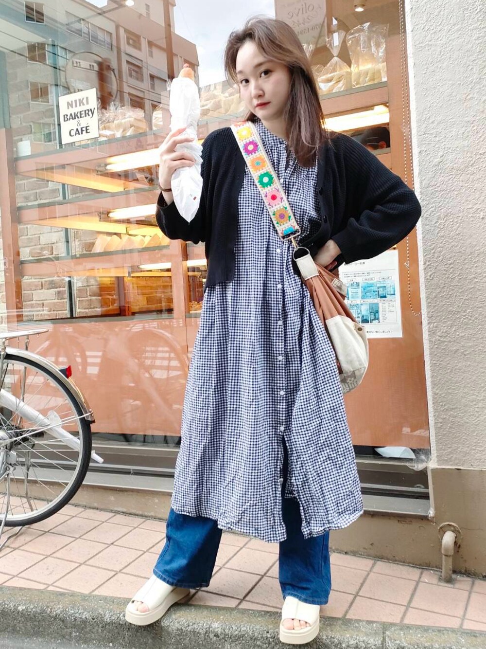bakeのショルダーバッグ「自分で作ったバッグ🐥中はナイロンの生地、ポケットいっぱい、大容量サイズで作ったから使い勝手バツグン( ˶ฅ´v`ฅ˵ )♡」を使ったコーディネート