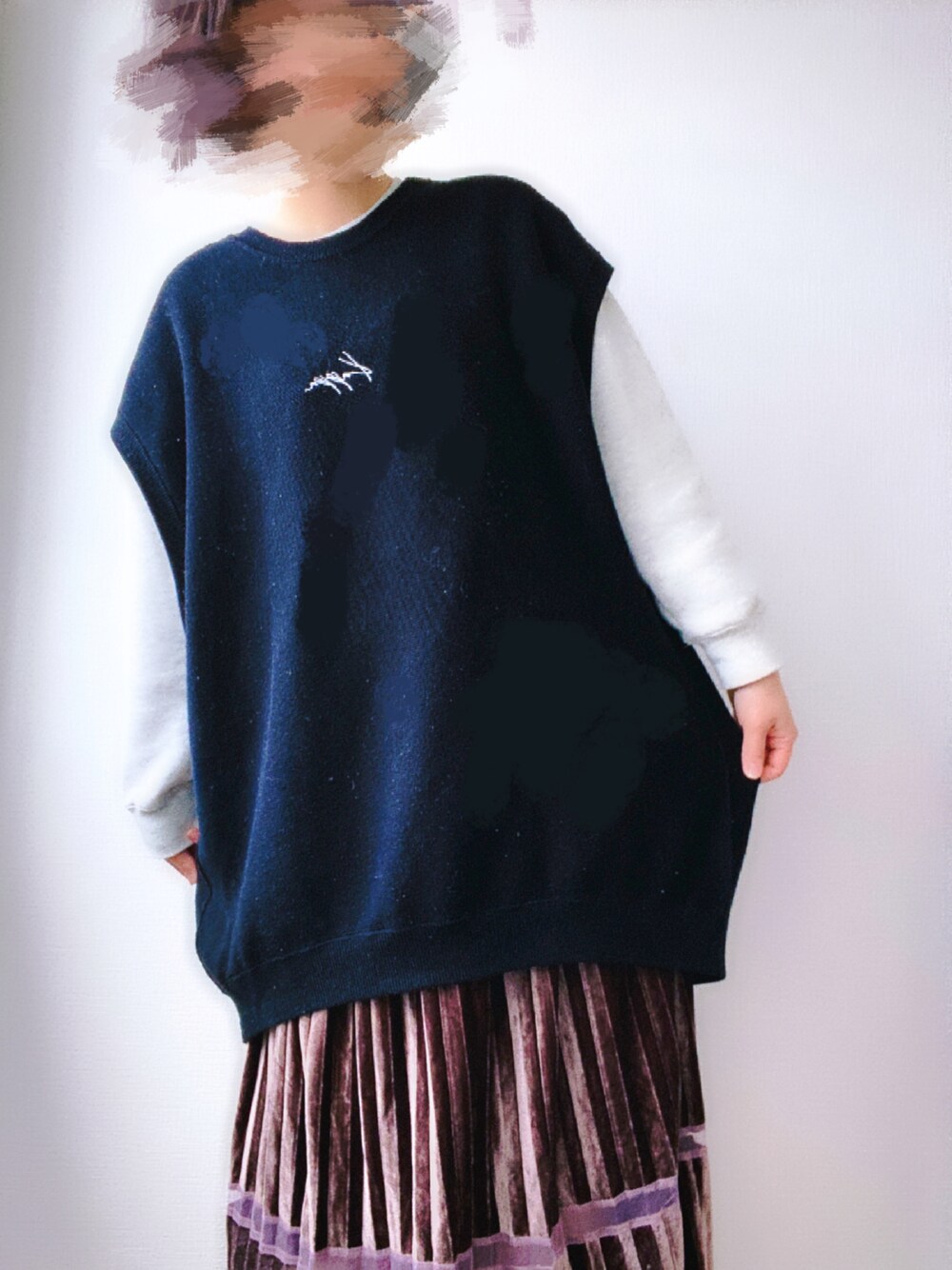 じゅんのベスト「Kappa / カッパ 別注 ロゴ刺繍 オーバーサイズ クルー リンキング ニットベスト」を使ったコーディネート