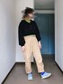 じゅんのスラックス「綿100% マニッシュ、キマる。センタープレスパンツ」を使ったコーディネート