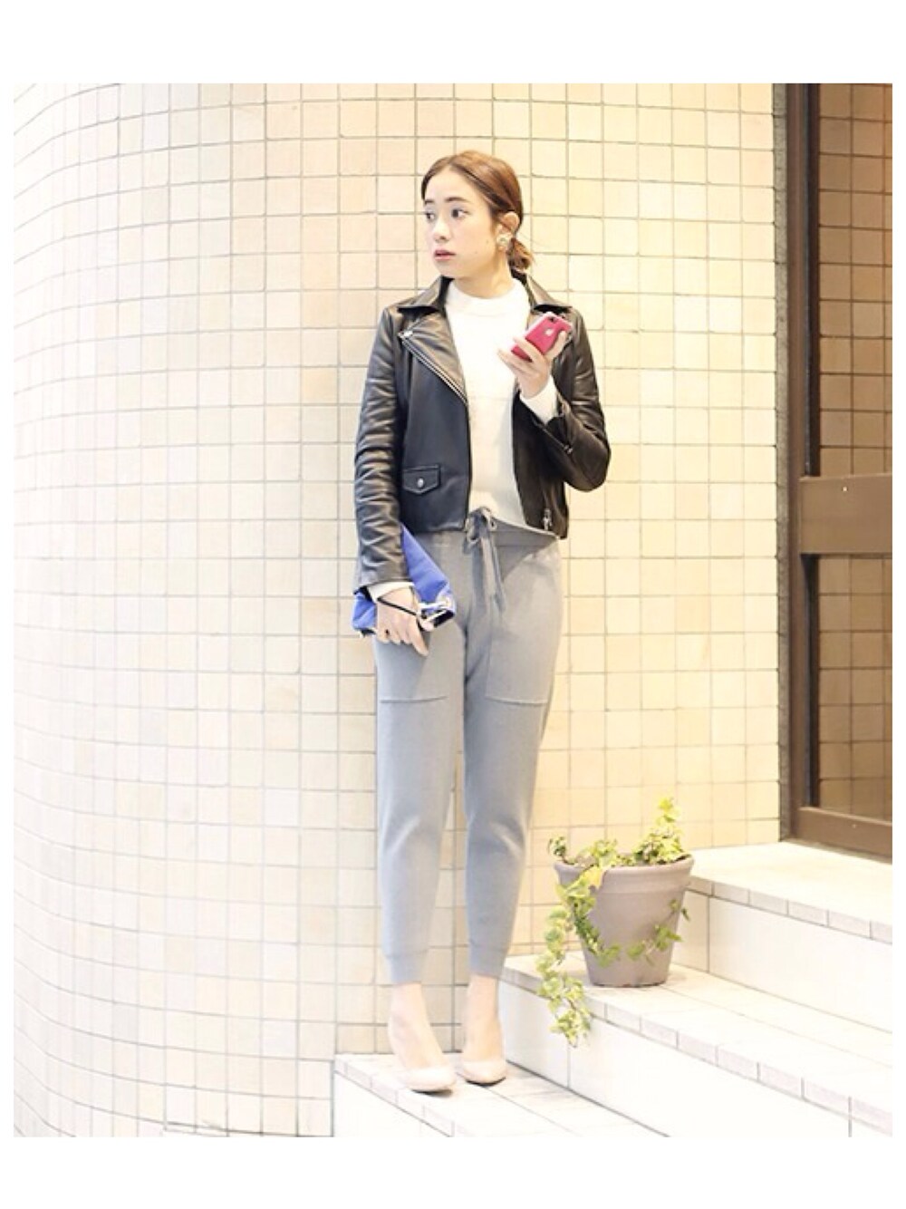 ベイカー恵利沙のライダースジャケット「STUDIOUS ラムダブルライダースJK」を使ったコーディネート
