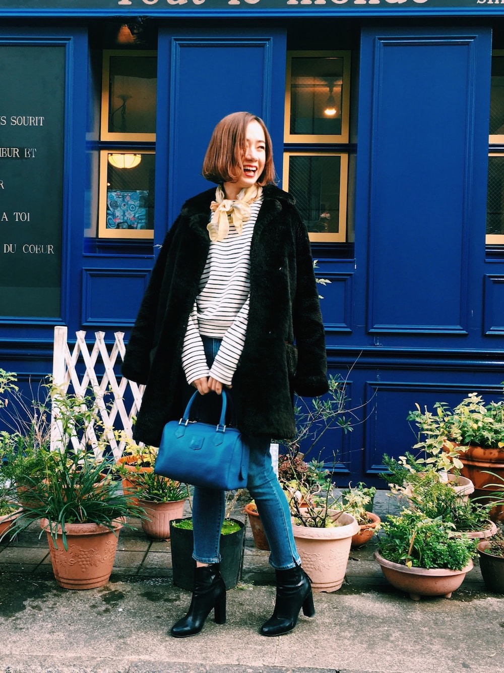 ままのお下がりファーコートと、 おばあちゃんのお下がりスカーフ💖