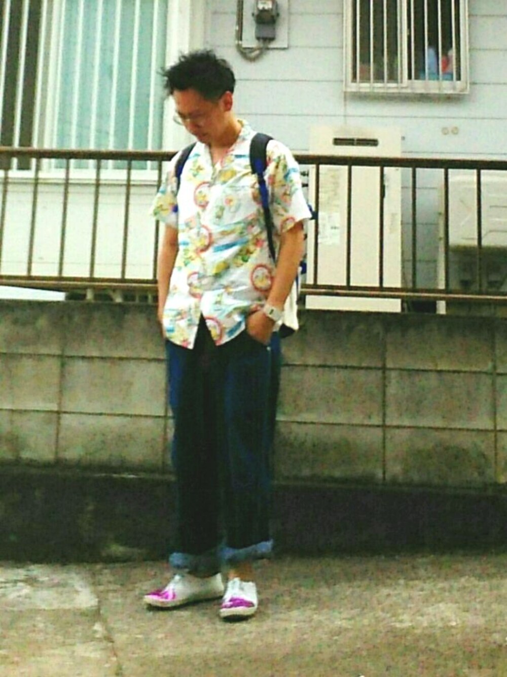 お疲れ様です。 これから代々木公園で音楽聴きながら酒飲んでゴロゴロします😪💤💤 今日のテーマは、チンピラです。 うしじまくん観てたからかな。。笑 一応昔はいろんなのファッション誌のスナップ呼んでいただいたり、スマートが出したコーヒー牛乳のパッケージにも載ったり、ヘア雑誌のモデルとしていろいろ載ってました。。遠い目 シャツはvintage kingで買った古着 パンツはシュプリーム 靴はTOGAのスニーカー。紫の部分だけ箔が張り付いてます。 時計はビームスのトーキングウォッチ バックパックは見えてないけどDickiesです。 ビーサンでもいけるスタイルです。