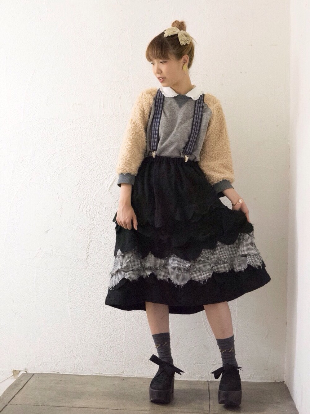 今日はシックな色でまとめてみたよ。 その中でも女の子らしさは忘れずに、 ソックスにはちいさなリボン🎶