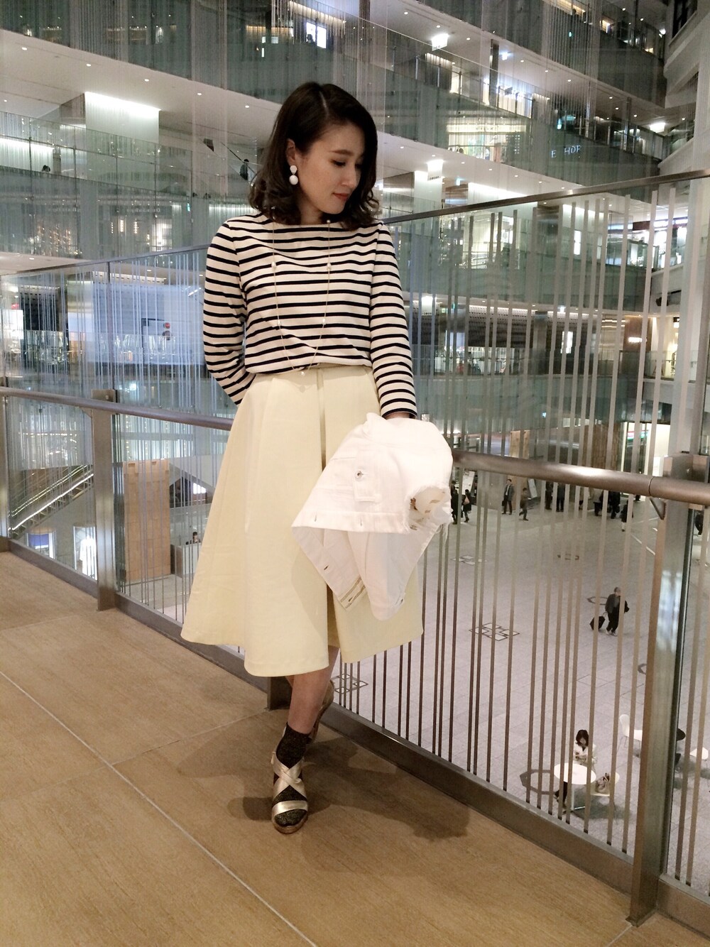 色味の優しいイエローのスカートはボーダートップスと相性がよく、トレンド感のある着こなしができます⭐️ 挑戦しやすい配色とバランスなので春先取りオススメコーディネートです!