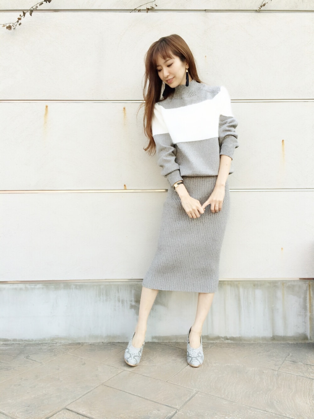 numao のワンピース「起毛ラインニットワンピース」を使ったコーディネート