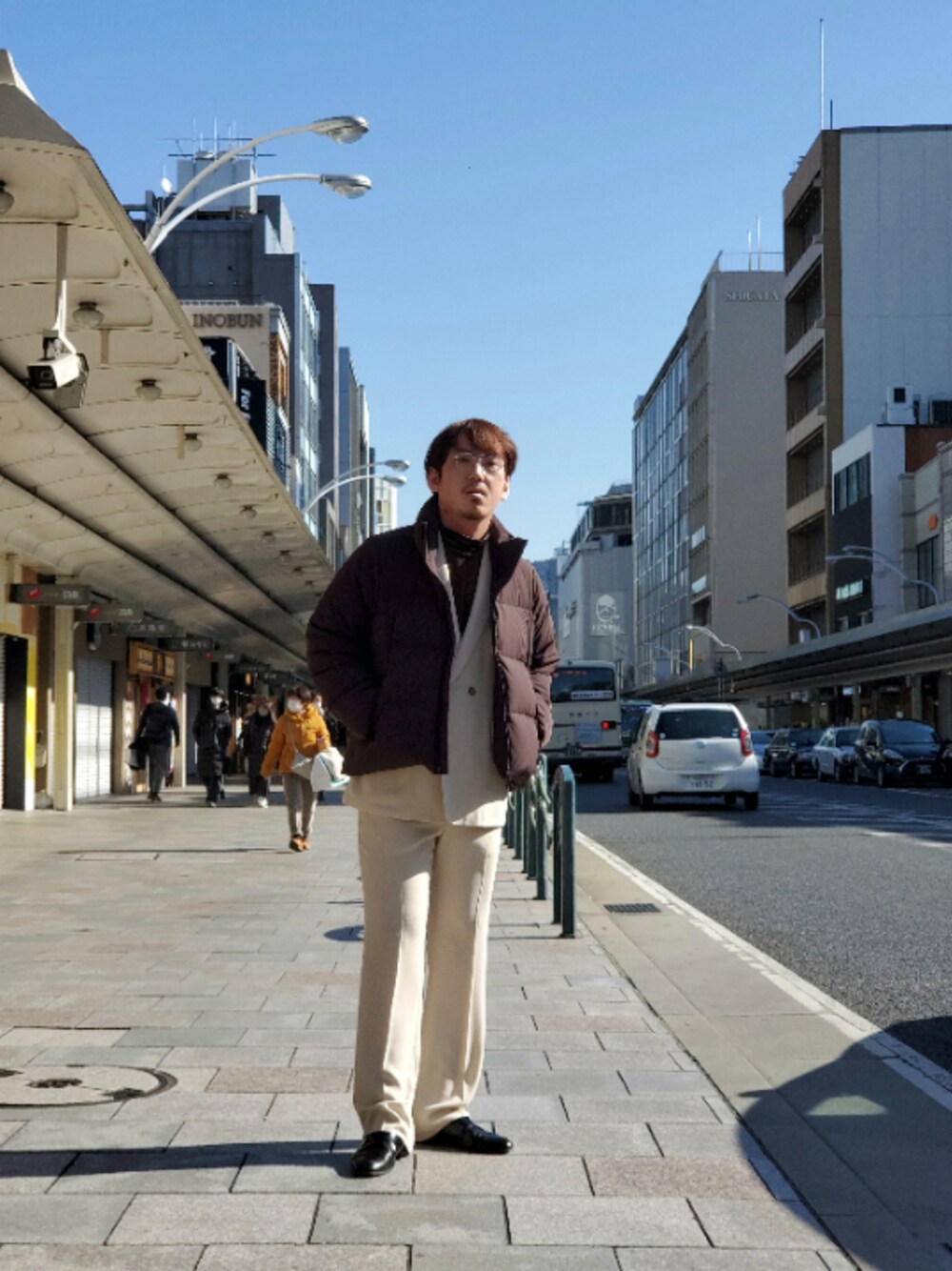 春物のセットアップ。 買ったけどまだ着れない?そんなことないです。 ガッツリ冬アウターと合わせてあげましょう。 短丈のダウンで足長に。